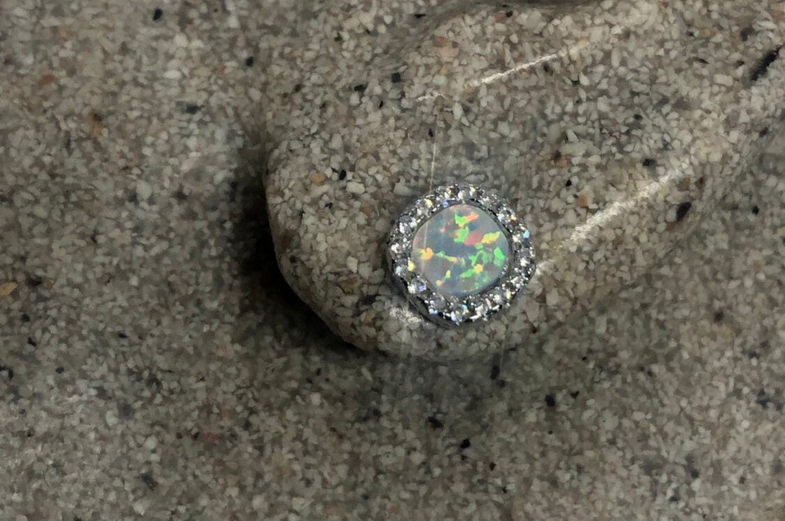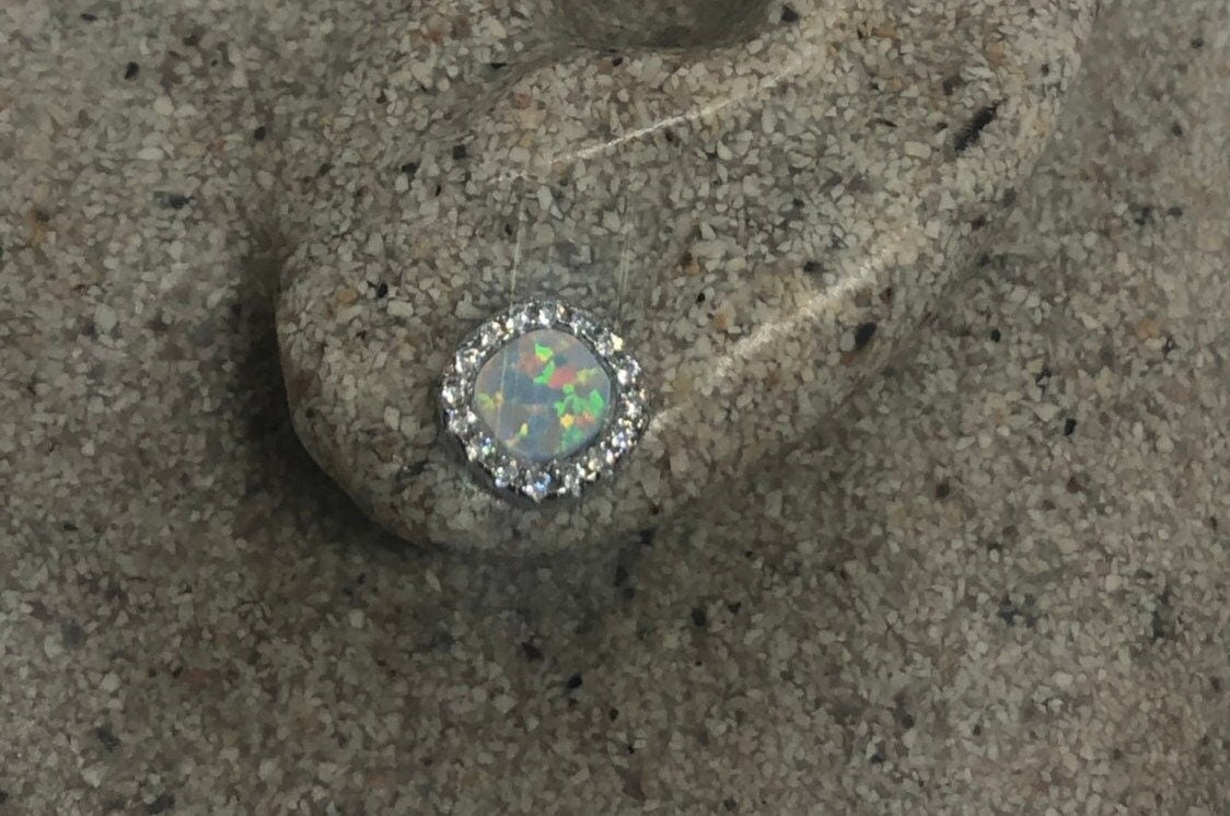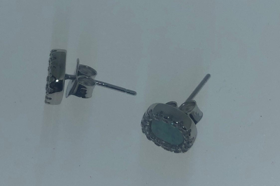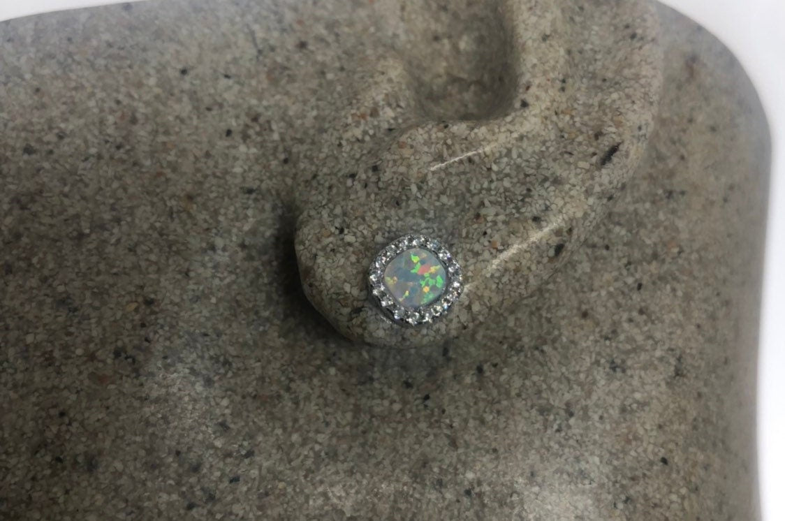 Delicate and detailed vintage Sterling Silver earrings set with Genuine Opal