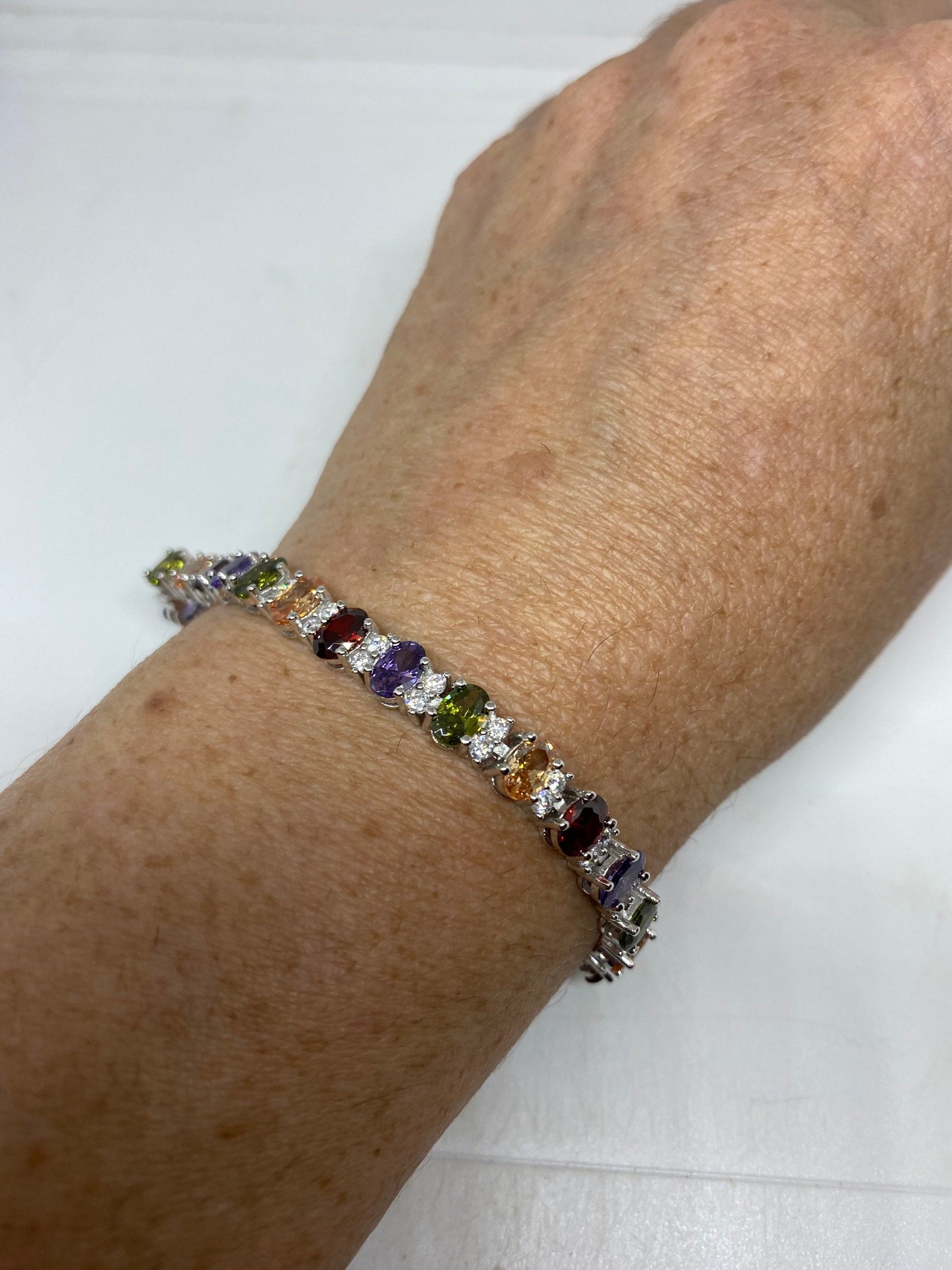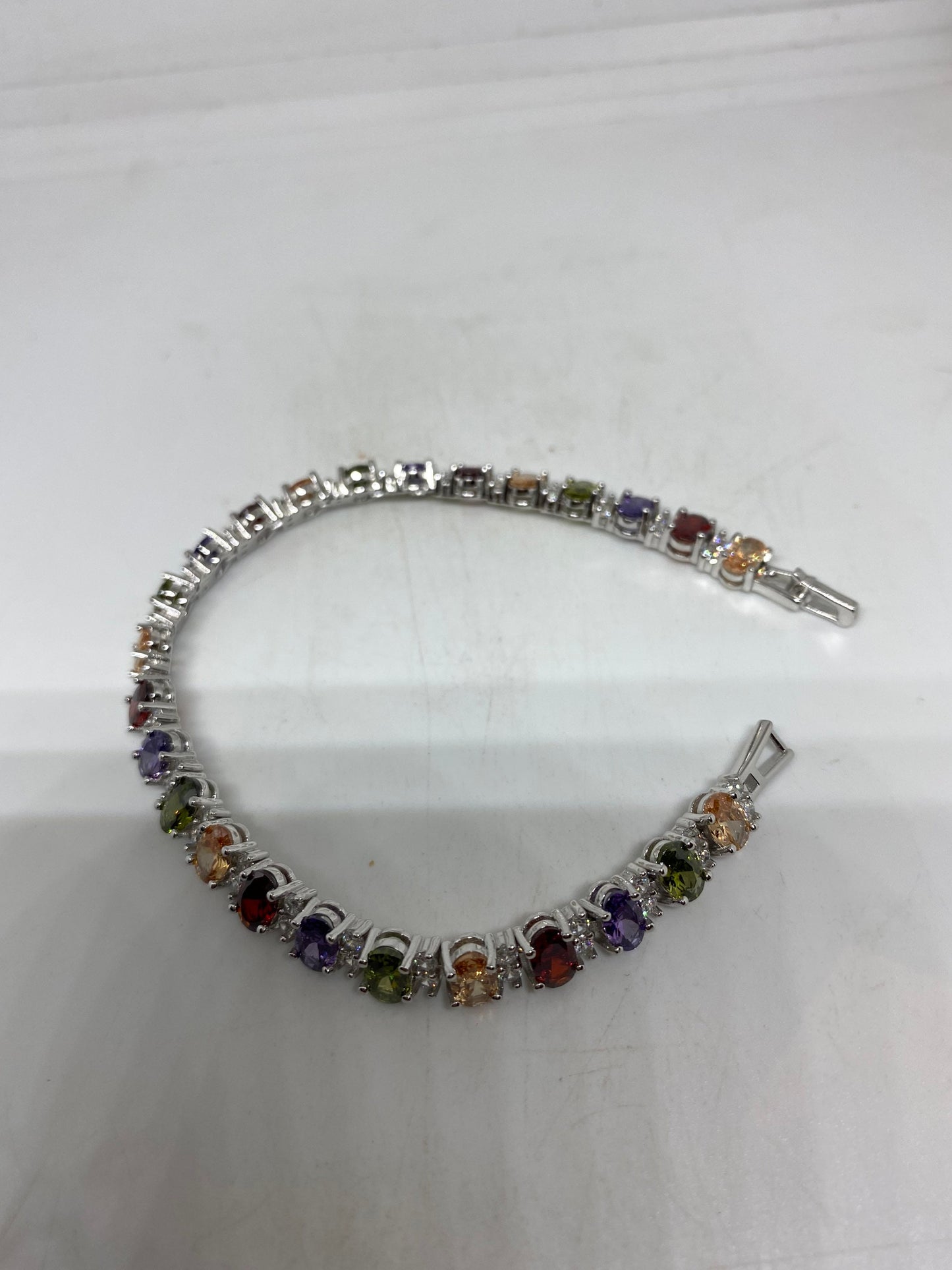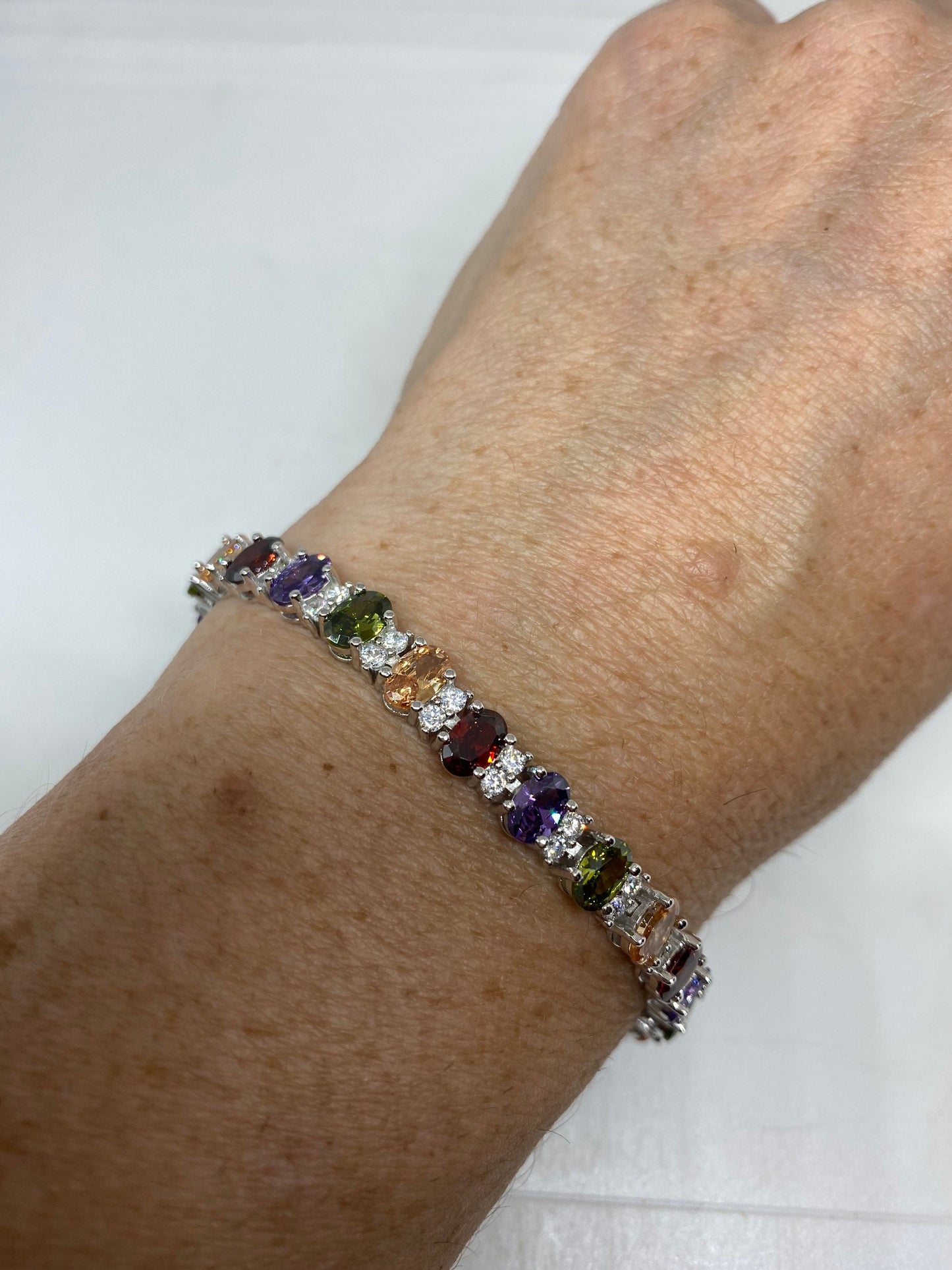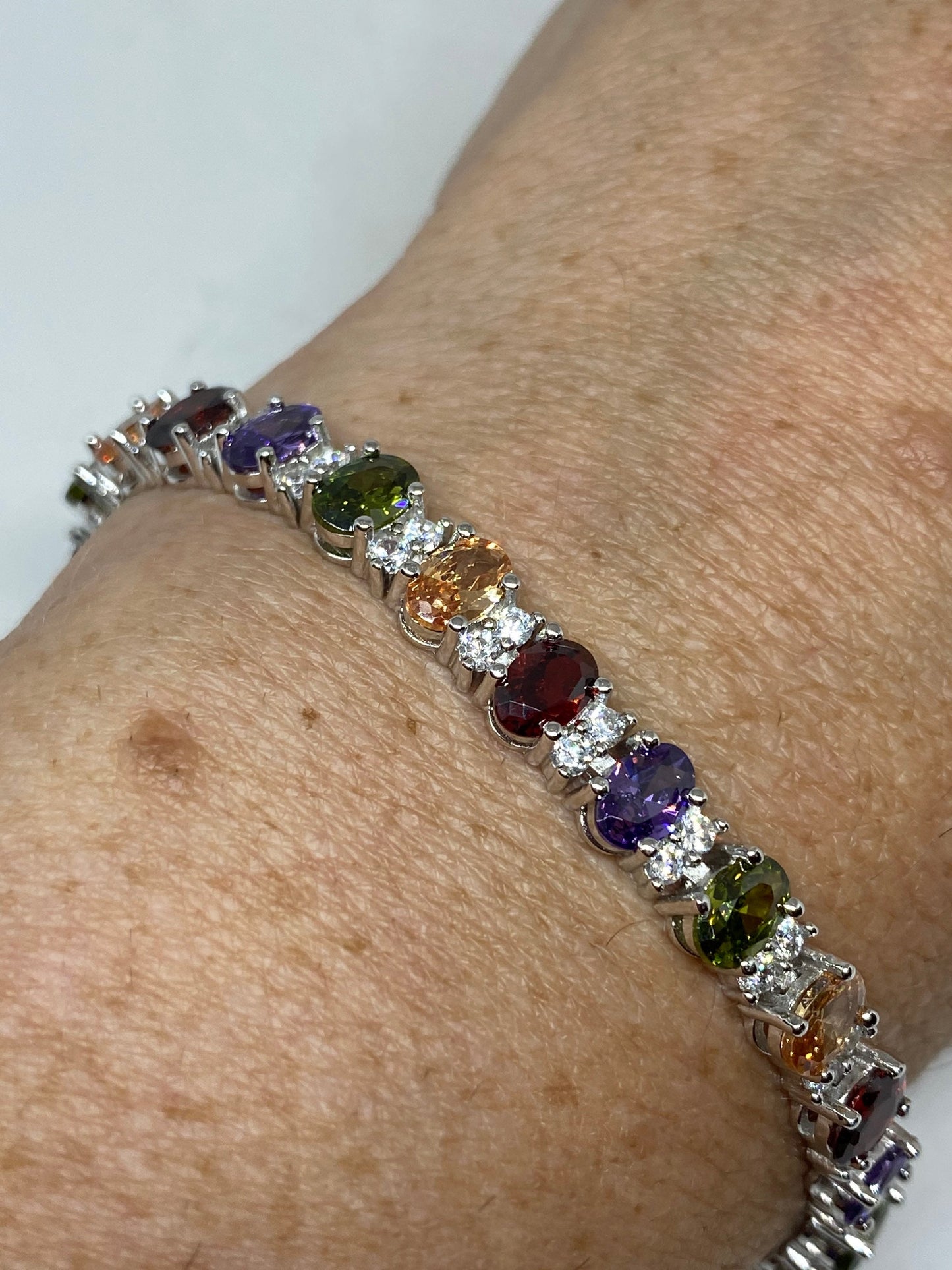 Vintage Garnet Amethyst Citrine Peridot in 925 Sterling Silver Tennis Bracelet