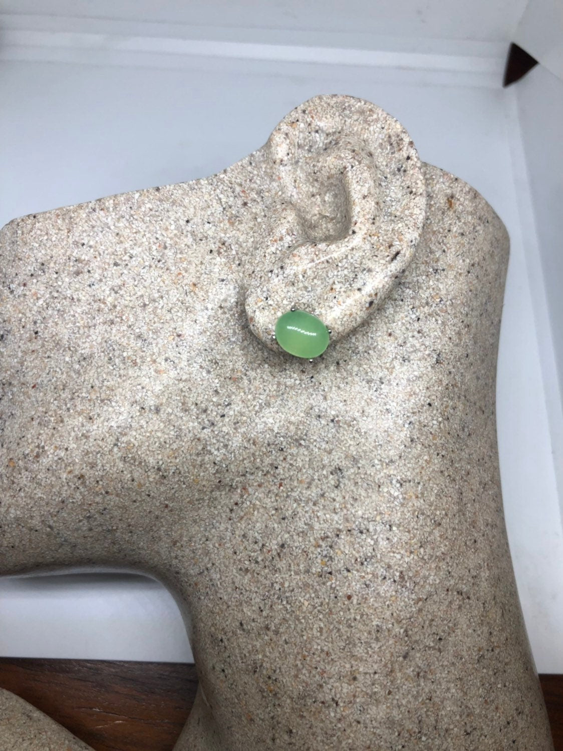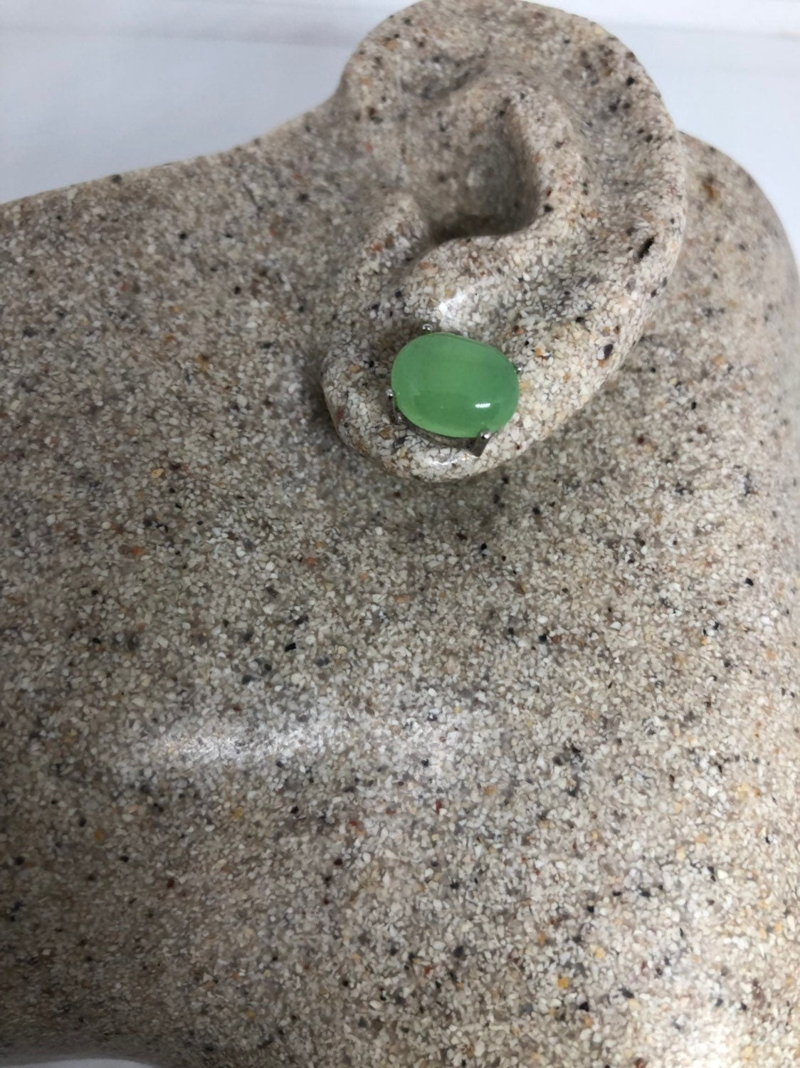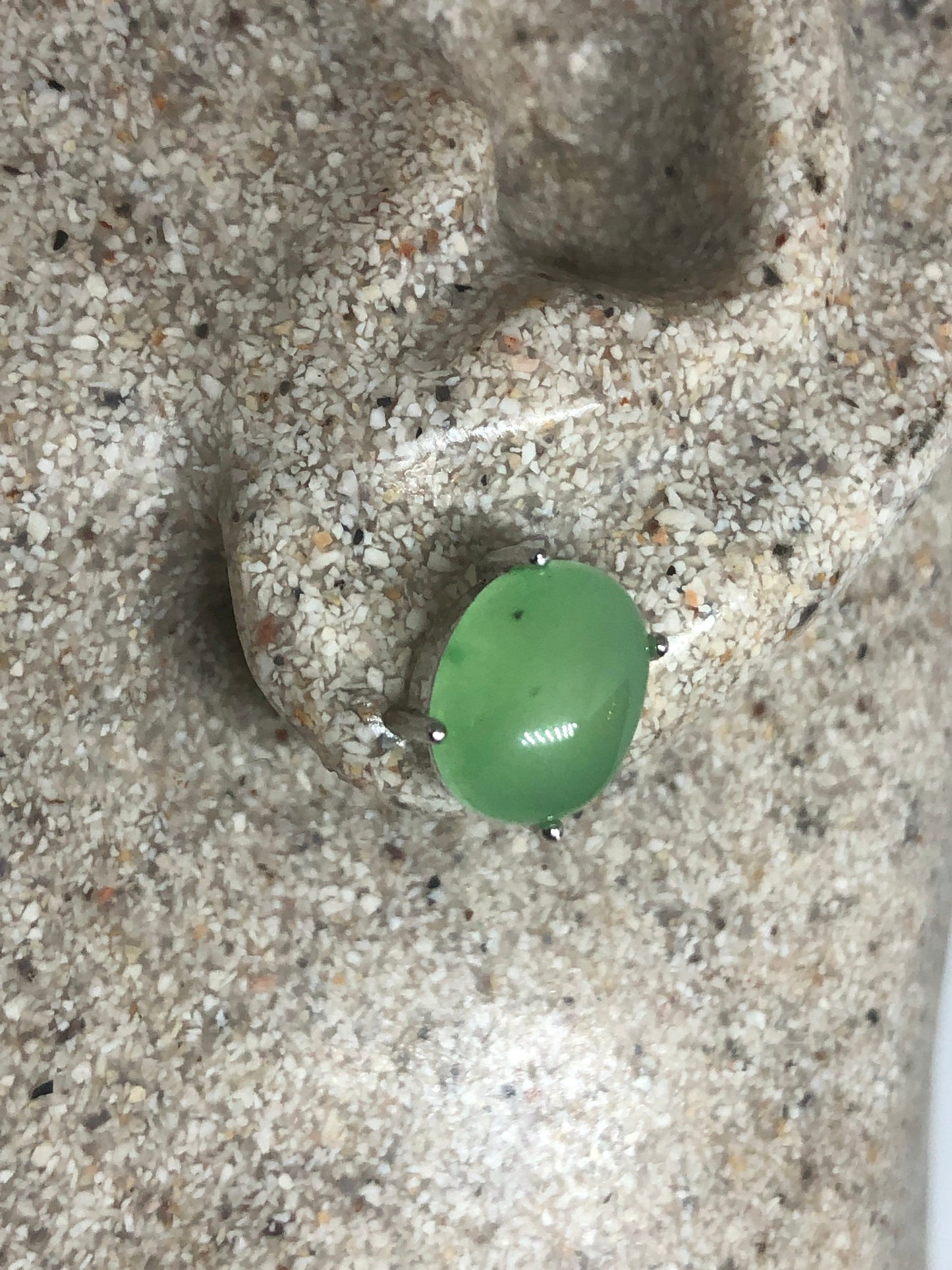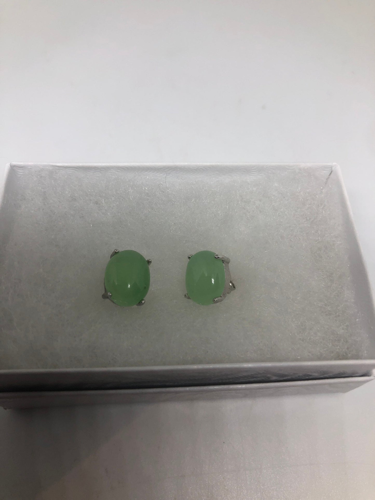 Delicate and detailed nephrite Jade and stone and white bronze silver earrings