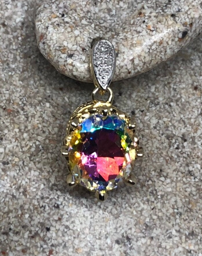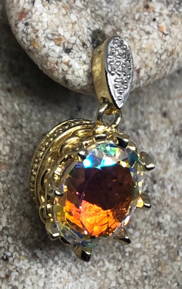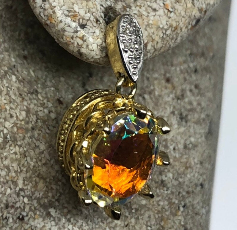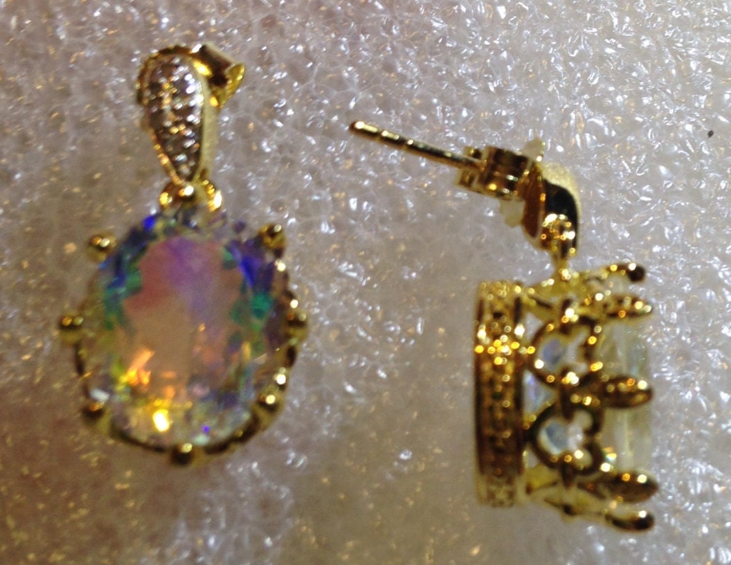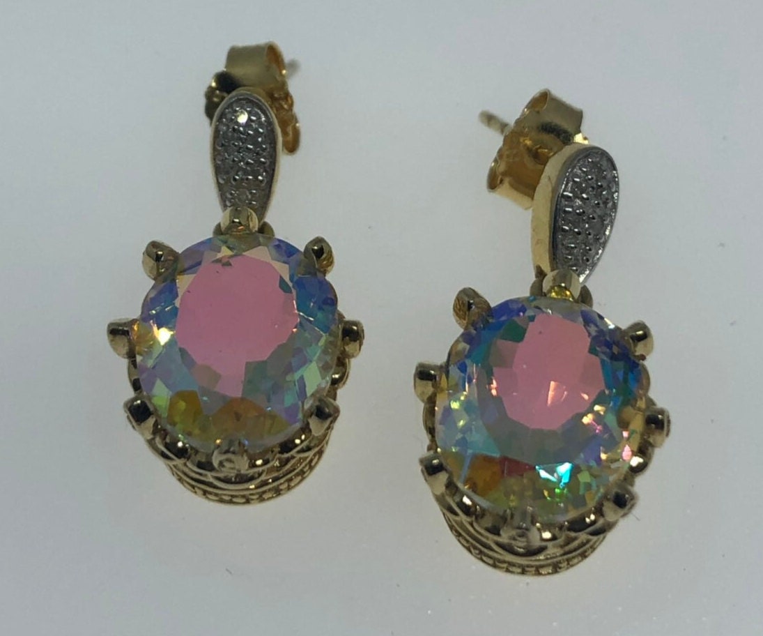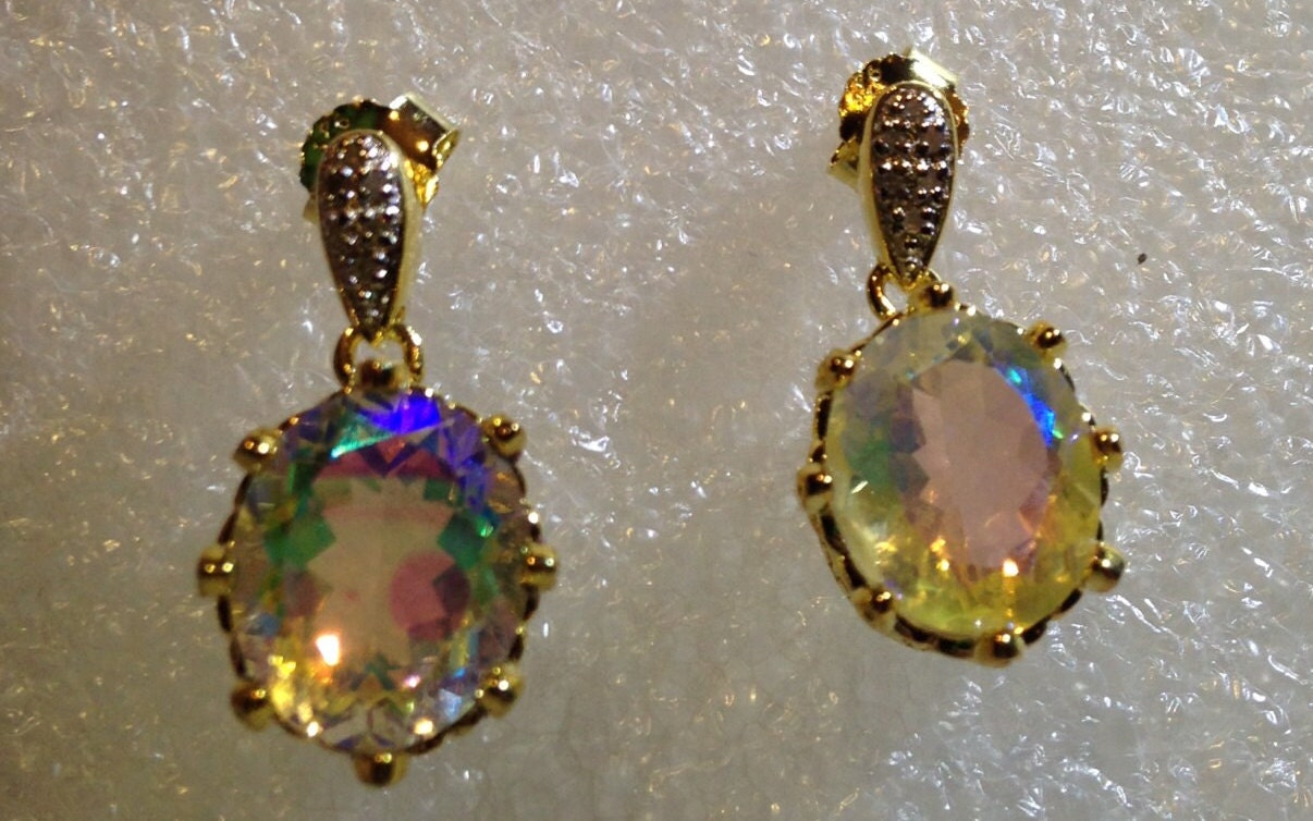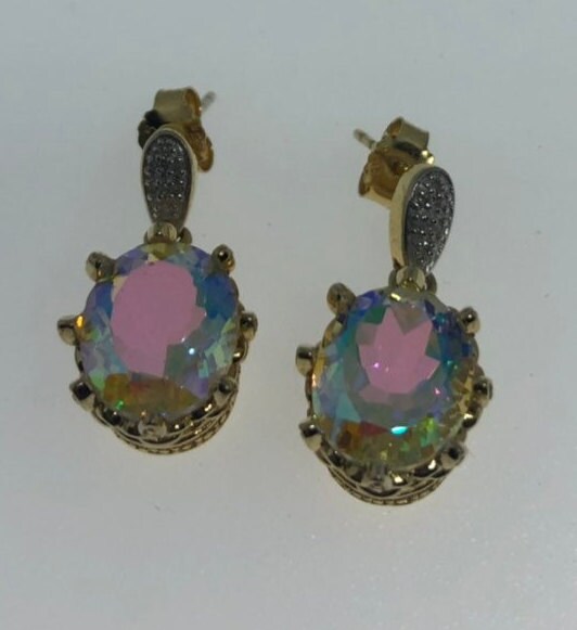 Vintage Mystic Topaz Earrings Golden Sterling Silver