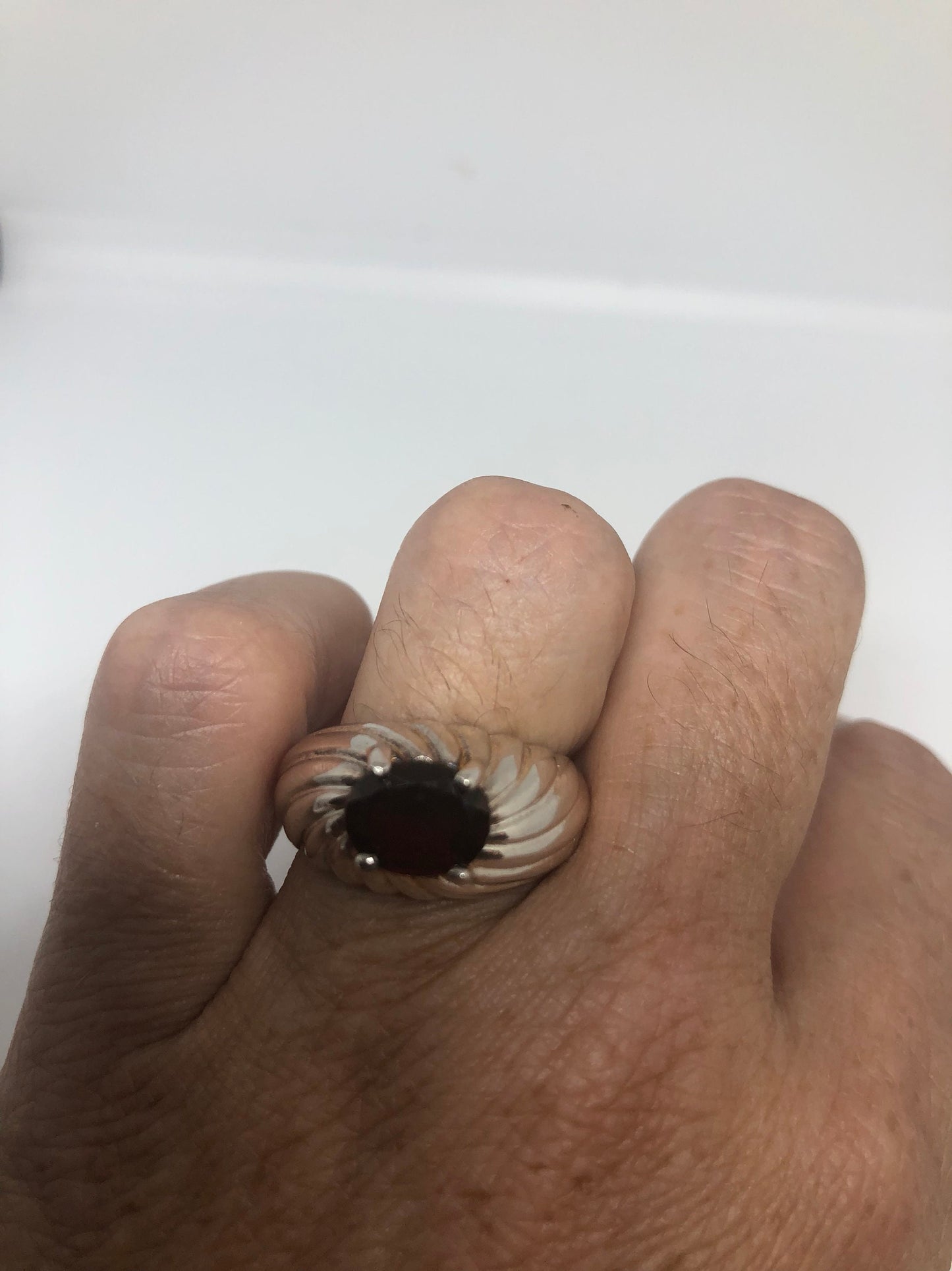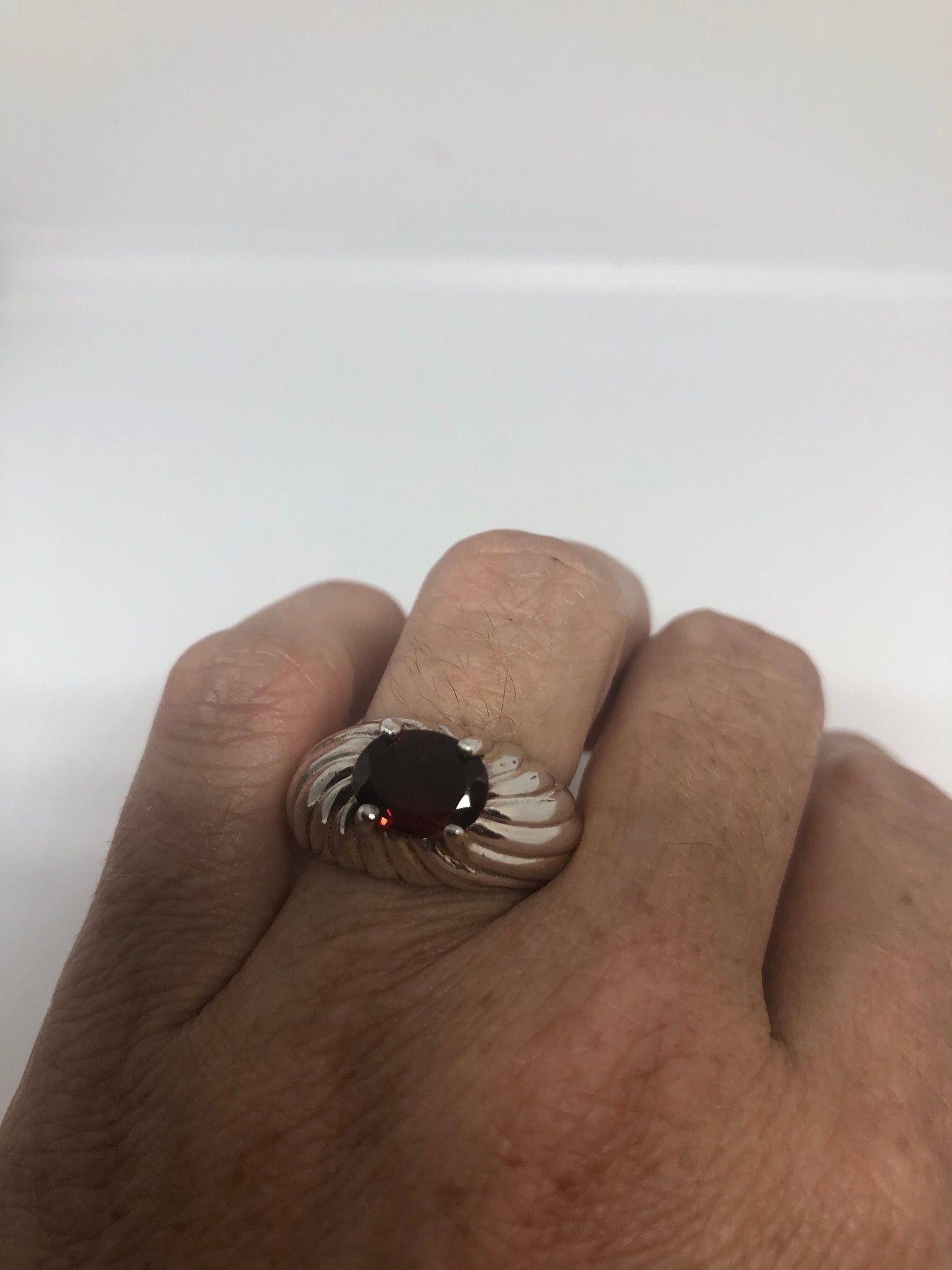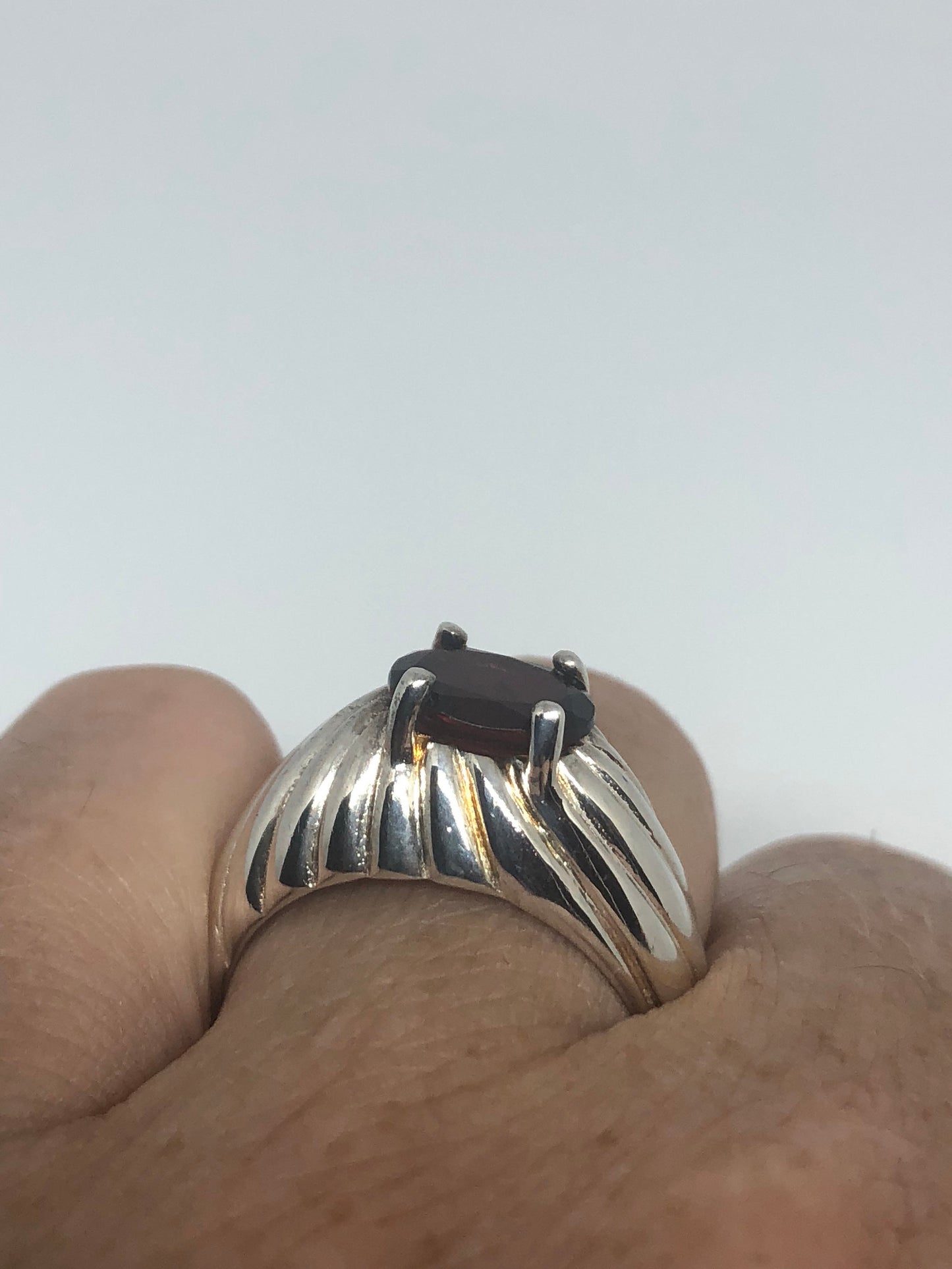 Vintage Red Bohemian Garnet Ring 925 Sterling Silver