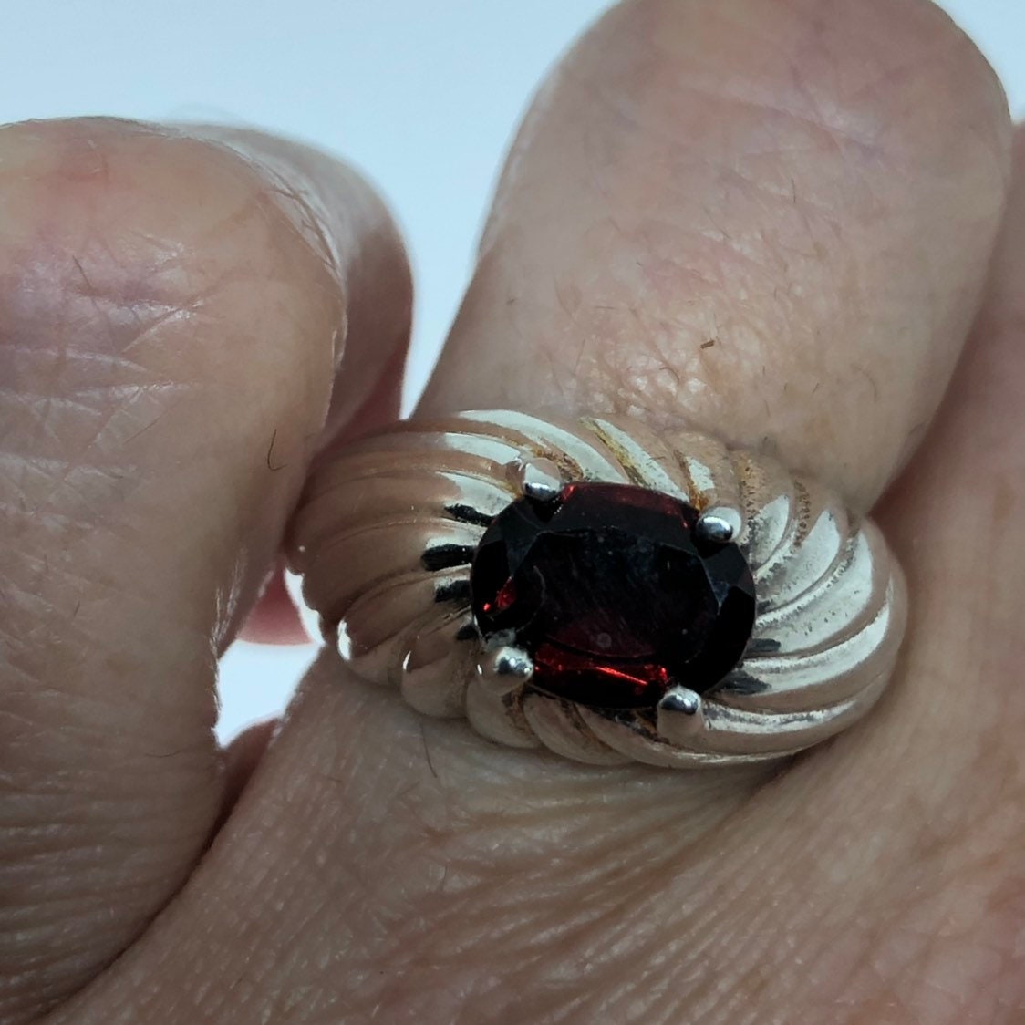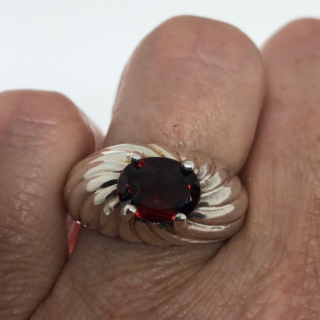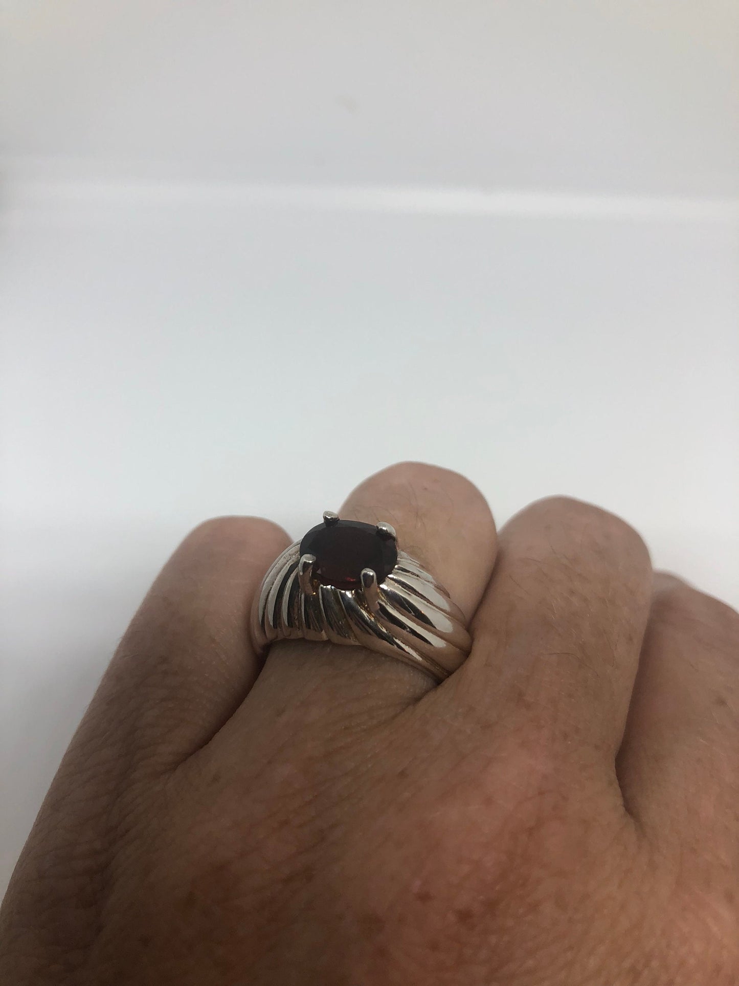 Vintage Red Bohemian Garnet Ring 925 Sterling Silver