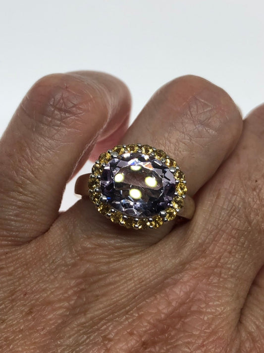 Vintage Handmade Deep Purple Genuine Amethyst Setting 925 Sterling Silver Gothic Ring