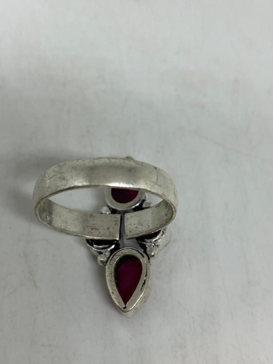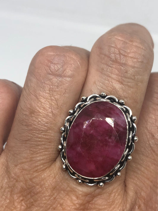 Vintage Handmade Raw Pink Ruby Silver Gothic Ring