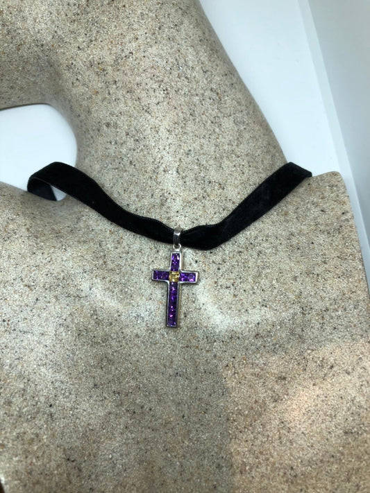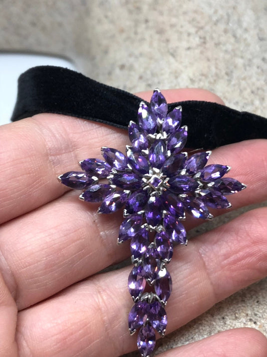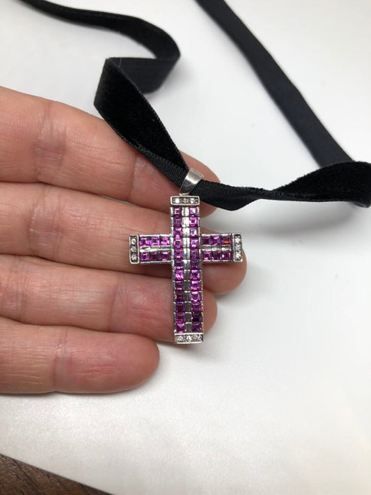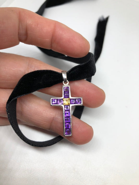 Vintage Handmade Sterling Silver Amethyst Celtic Cross Pendant