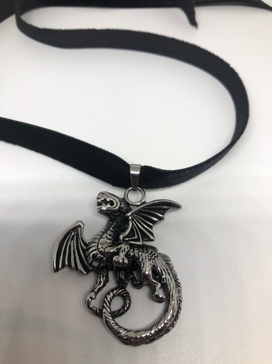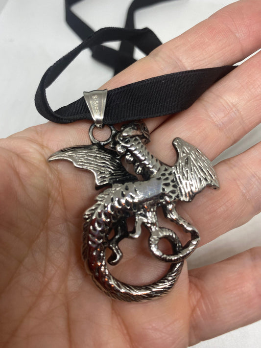 Vintage Handmade Sterling Silver 925 Gothic Dragon Necklace