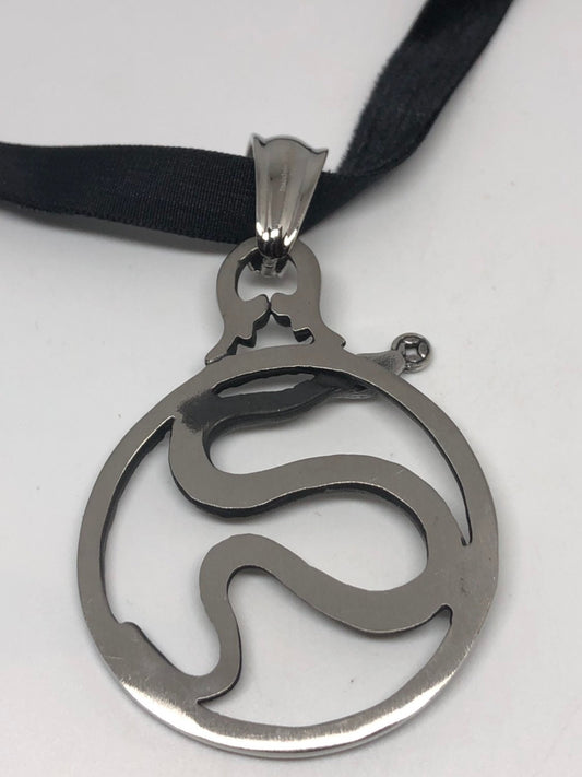 Vintage Handmade Stainless Steel Snake Lucky Yen Amulet Pendant