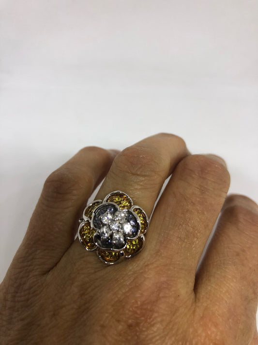 Vintage Handmade White Sapphire and Citrine Rose 925 Sterling Silver Gothic Ring