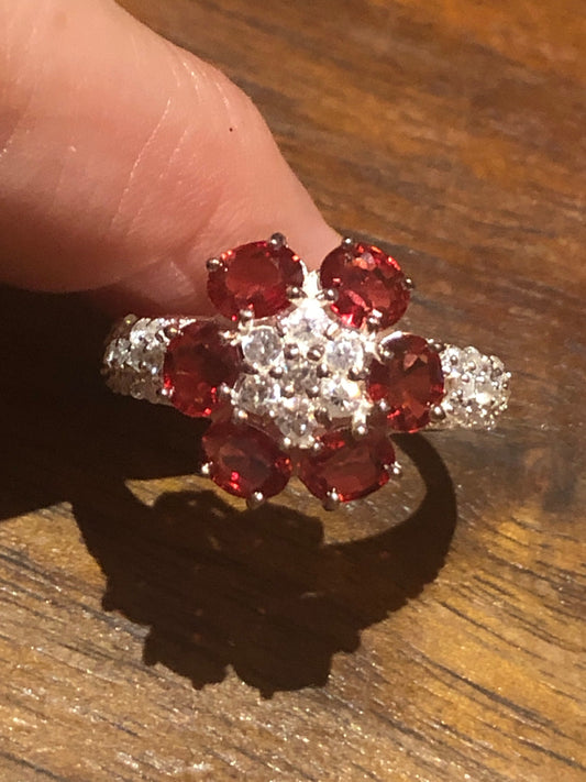 Vintage Red Garnet CZ Ring 925 Sterling Silver Cocktail Statement