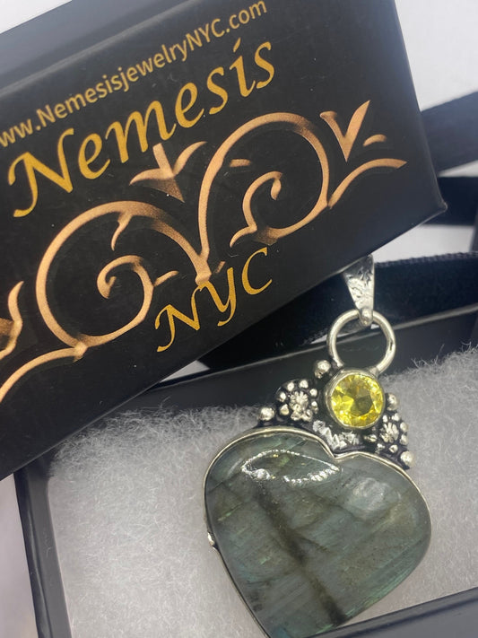 Vintage Silver Genuine Green Labradorite Gemstone Necklace