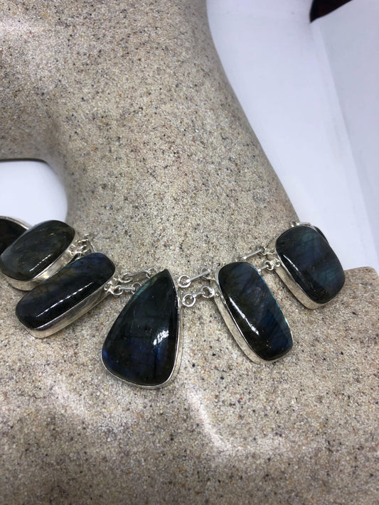 Vintage Silver Genuine Labradorite Gemstone Necklace.