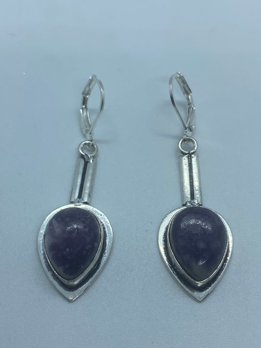 Vintage 925 Sterling Silver Purple Onyx Lever Back Earrings