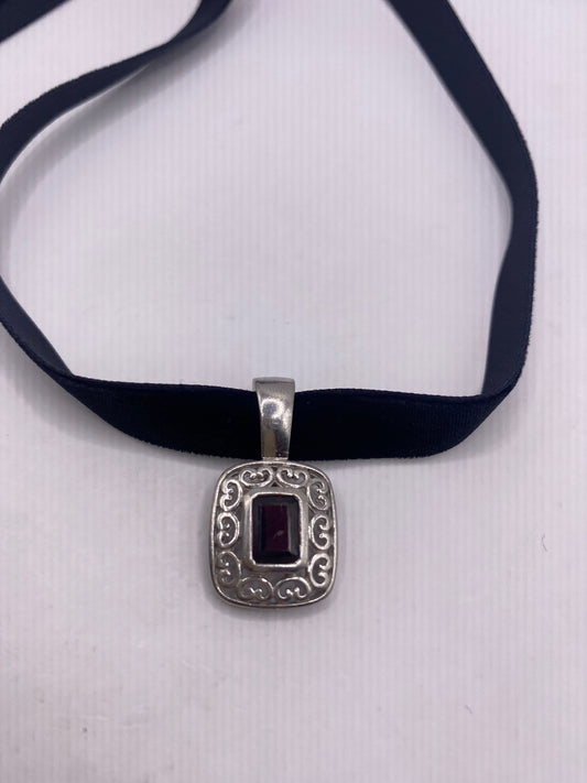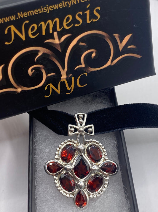 Vintage 925 Sterling Silver Red Garnet Choker Pendant Necklace