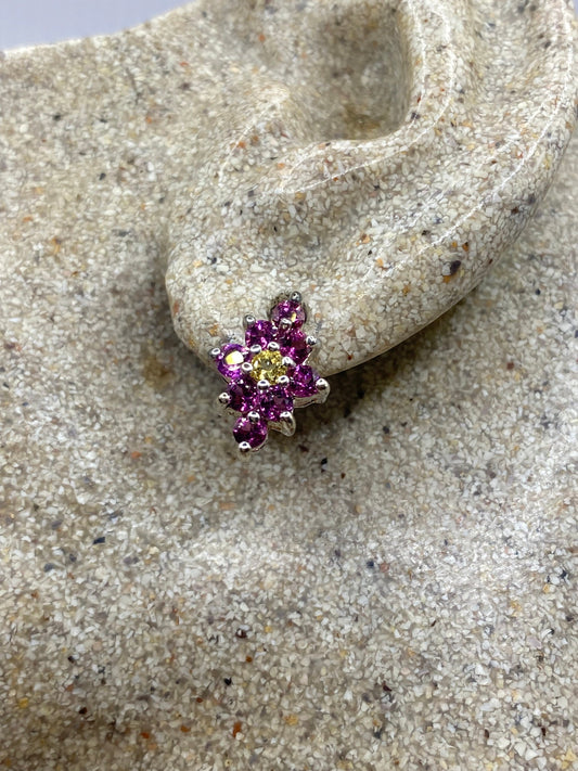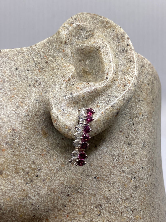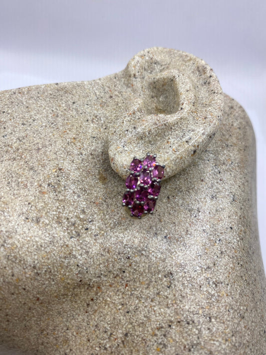Vintage 925 Sterling Silver Red Tourmaline Earrings
