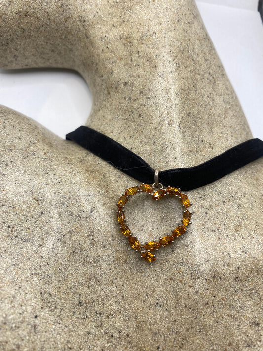 Vintage 925 Sterling Silver Spessertite Orange Garnet Antique Heart Pendant Necklace