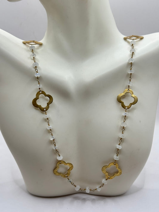Vintage 925 Sterling Silver Rainbow Moonstone Gold Necklace Choker