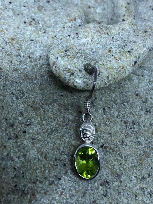 Vintage Handmade Sterling Silver Genuine Green Peridot drop Earrings