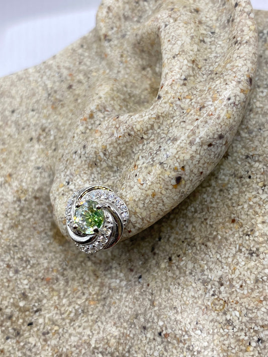 Vintage Sterling Silver Genuine Green Peridot Stud Earrings