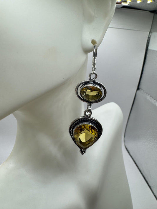 Vintage Citrine Earrings 925 Sterling Silver Chandelier Dangle