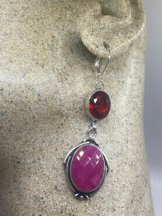 Vintage Pink Raw Ruby Earrings 925 Sterling Silver Leverback