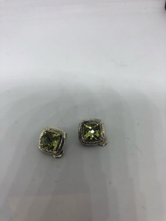 Vintage Genuine Citrine Gemstone 925 Sterling Silver Clip Earrings
