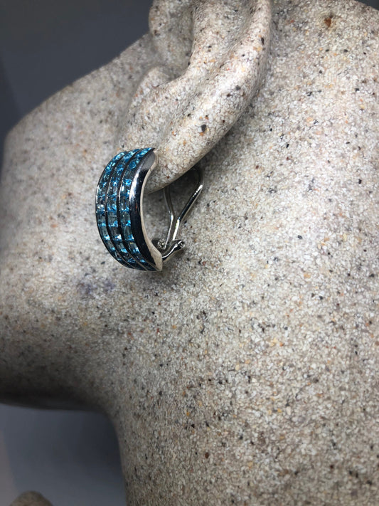 Vintage Mixed Genuine Blue Topaz Gemstone Filigree 925 Sterling Silver Earrings
