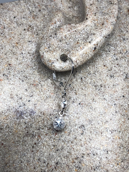 Vintage Handmade Sterling Silver diamond look White Sapphire Gemstone drop Earrings