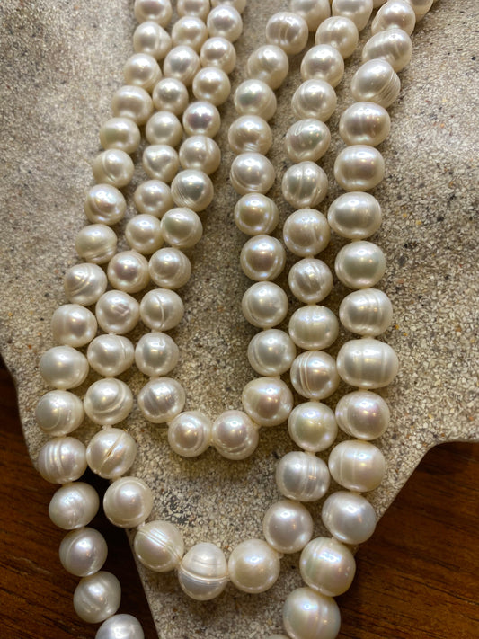 Vintage Hand Knotted White Pearl 3 Strand Necklace