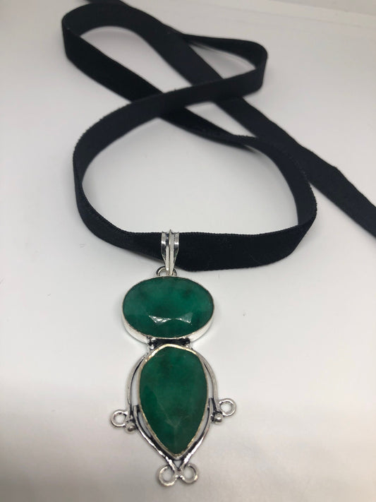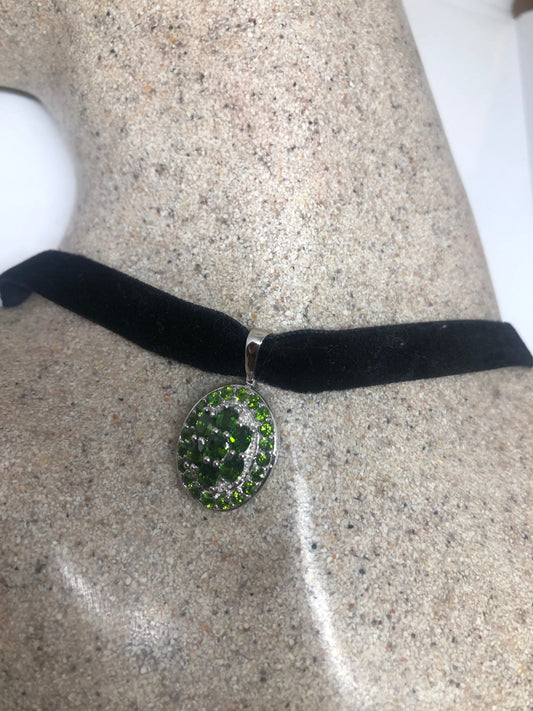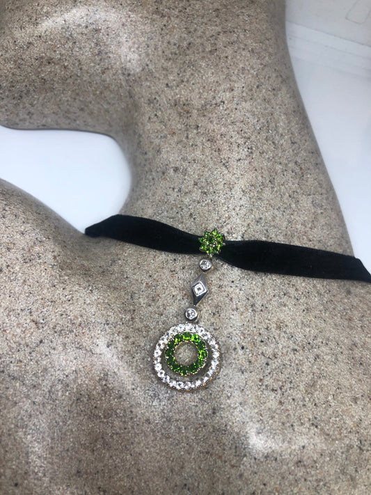 Vintage Green Choker Deco Chrome Diopside 925 Sterling Silver Pendant Necklace