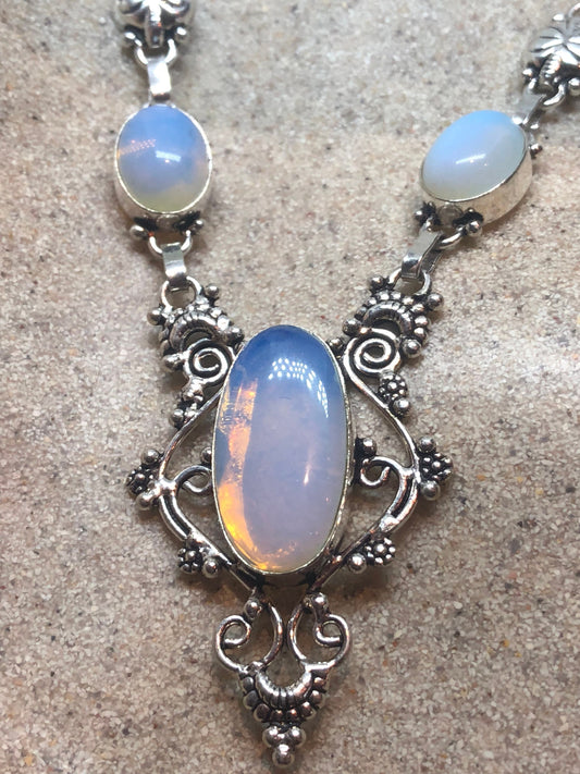 Vintage Opal milk glsss Silver collar Necklace Choker