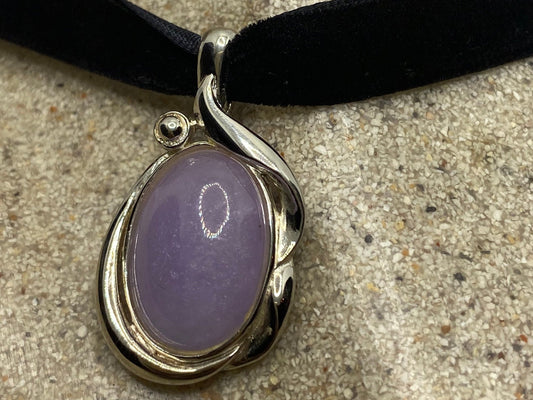 Vintage Purple Jade Choker 925 Sterling Silver Pendant Necklace