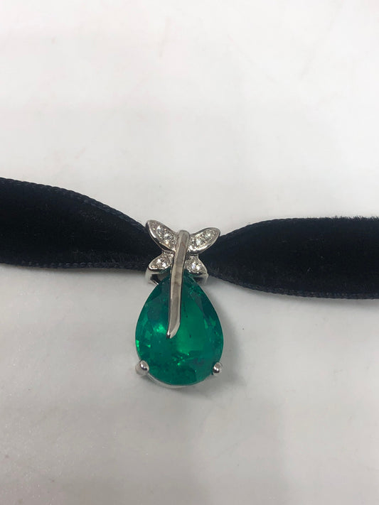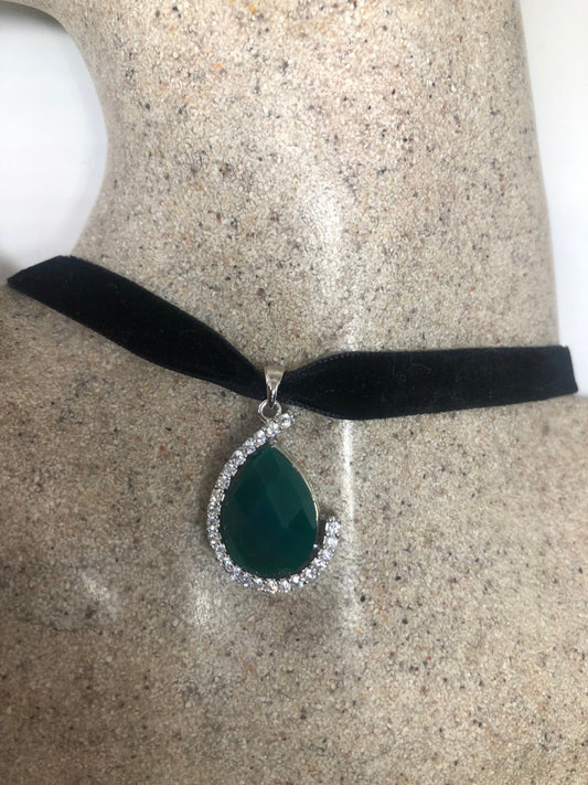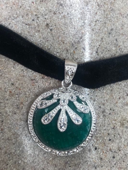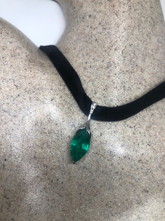 Vintage Green Chysopraise Choker 925 Sterling Silver Pendant Necklace