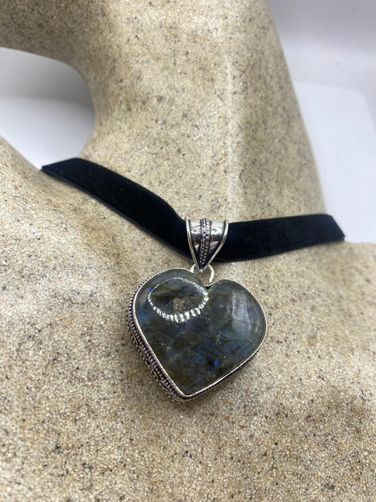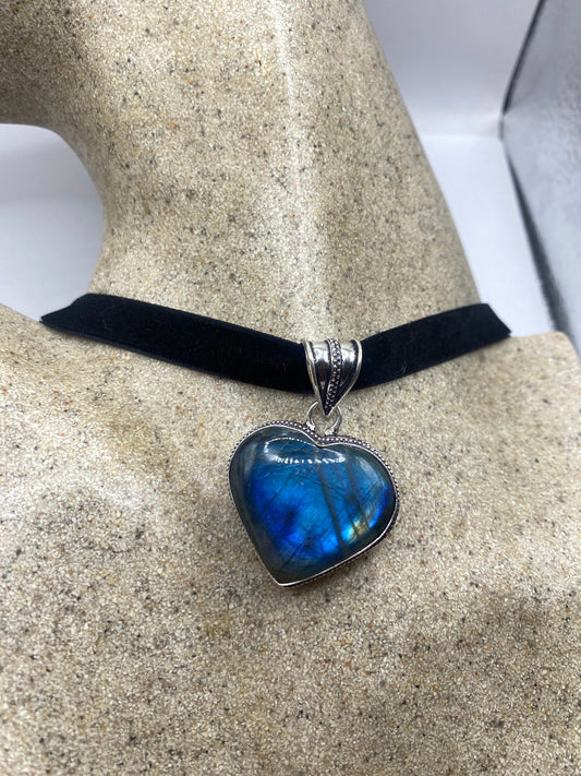 Vintage Heart Antique Blue Labradorite Choker Necklace