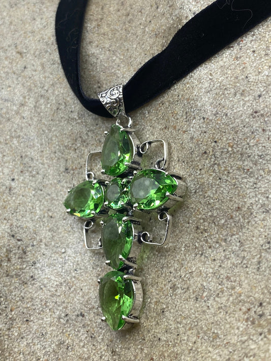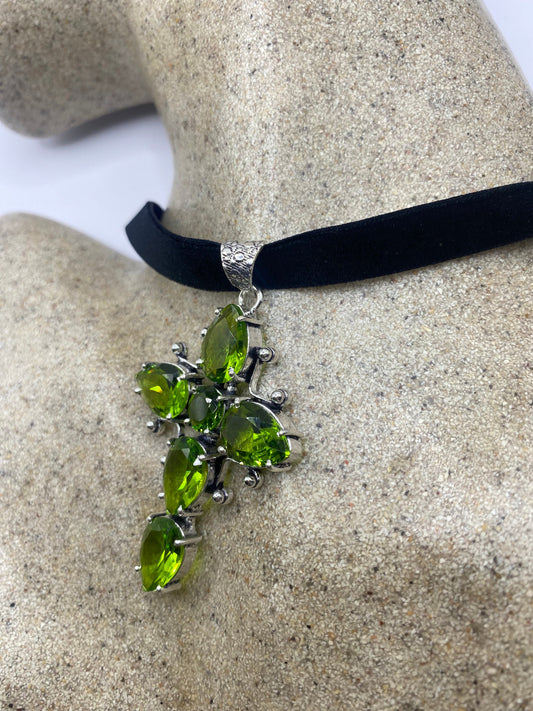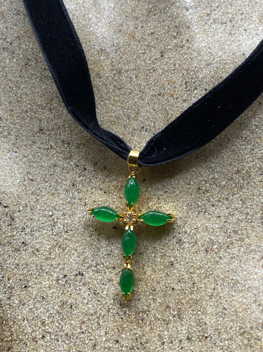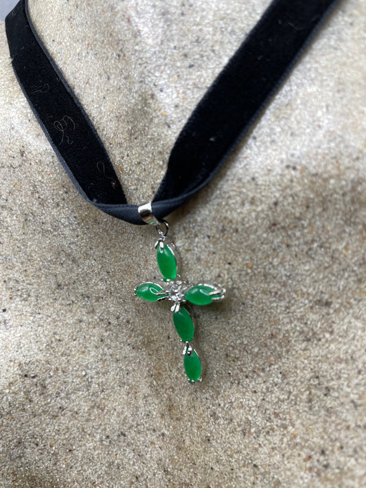 Vintage Fun Jade Choker Cross Pendant Necklace