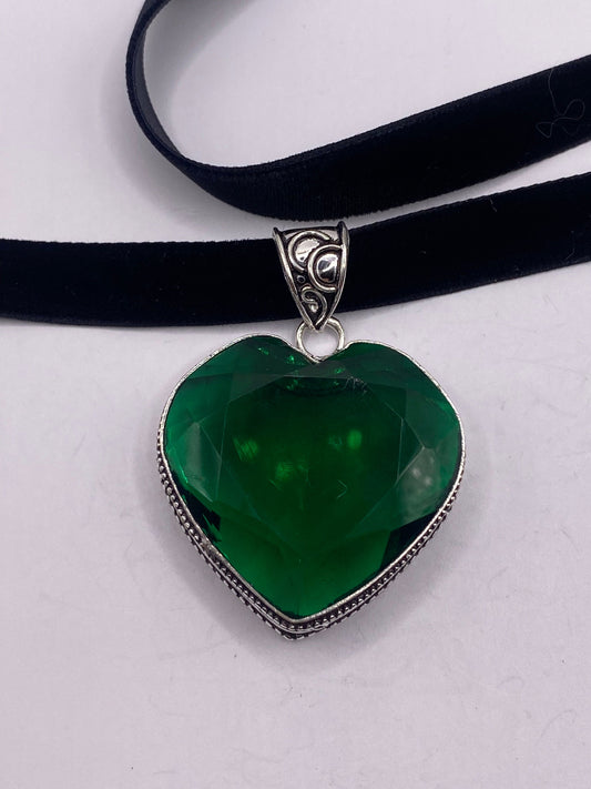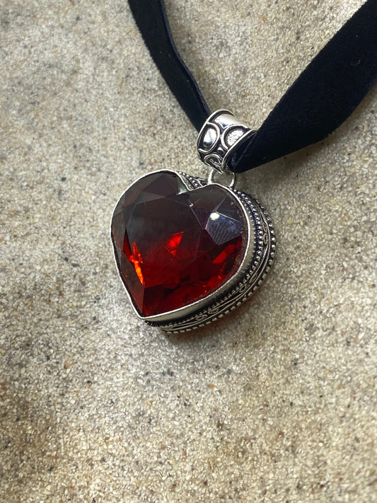 Vintage Heart Antique Red Ruby Glass Choker Necklace