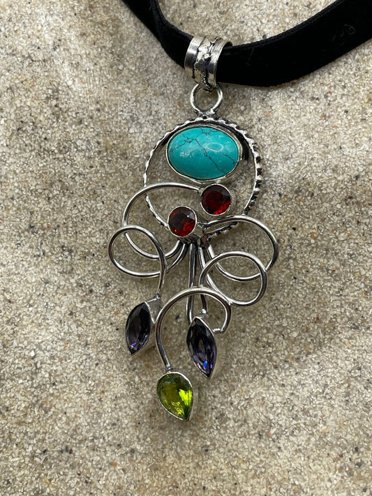 Vintage Silver Finished Genuine Tibetan Turquoise Choker Necklace