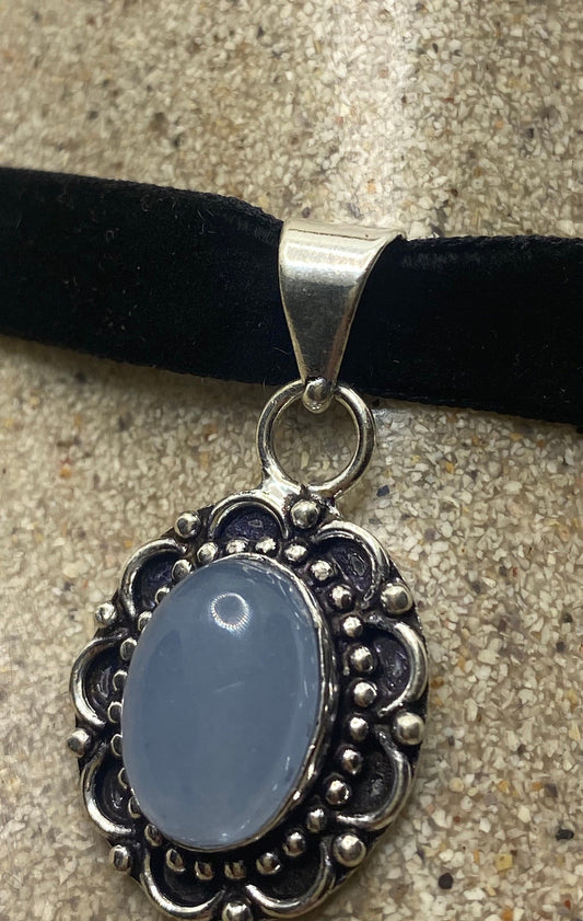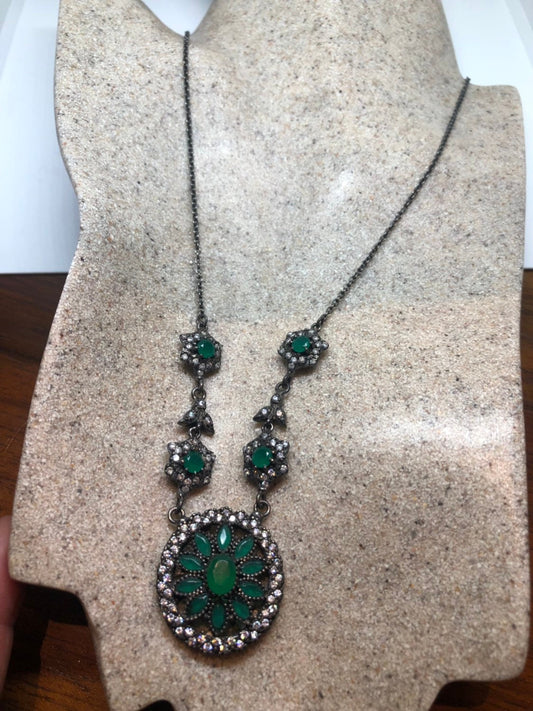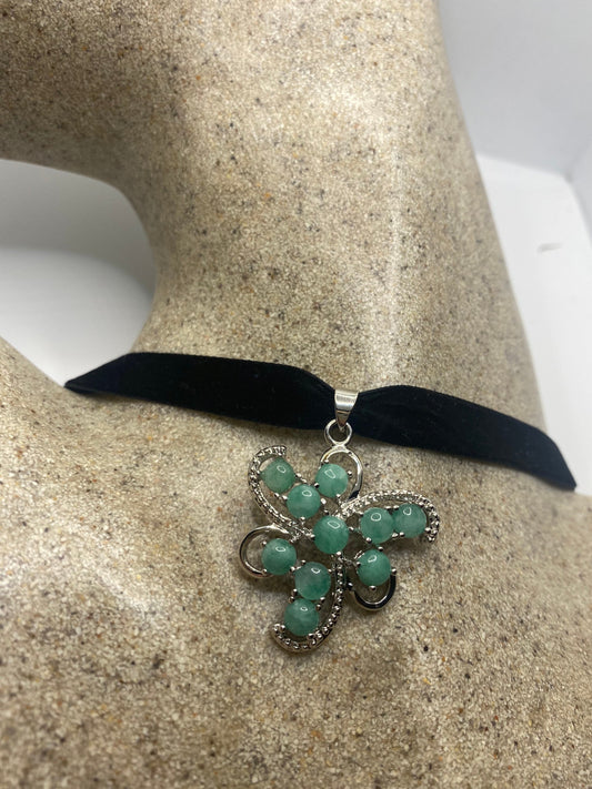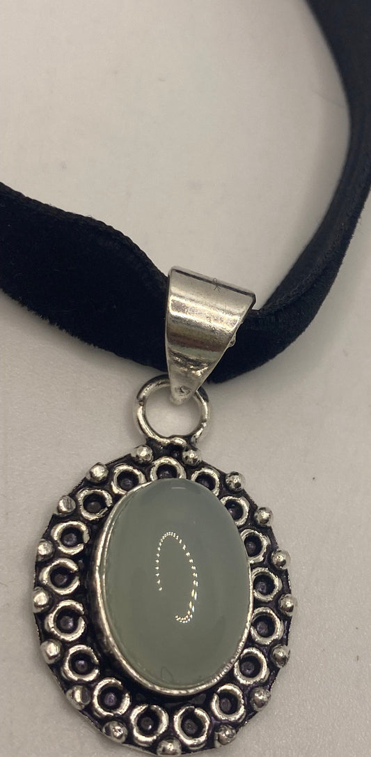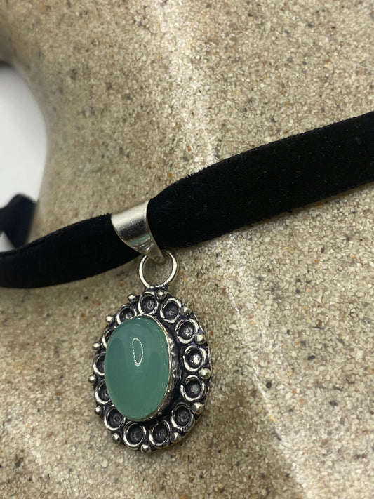Vintage Green Jade Choker Silver Finish Necklace Pendant