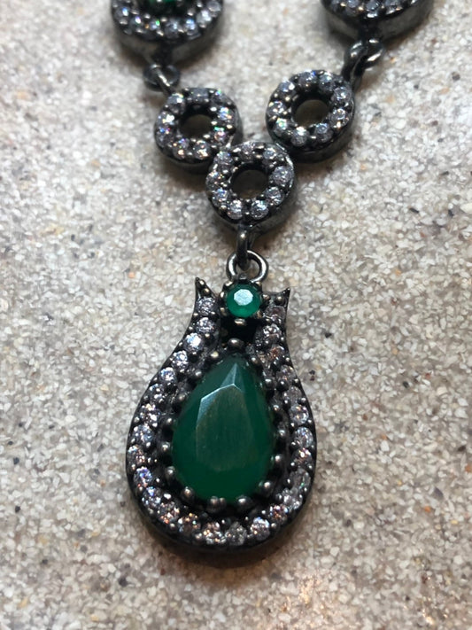 Genuine Green Quartz and Crystal Sterling Silver Vintage Necklace
