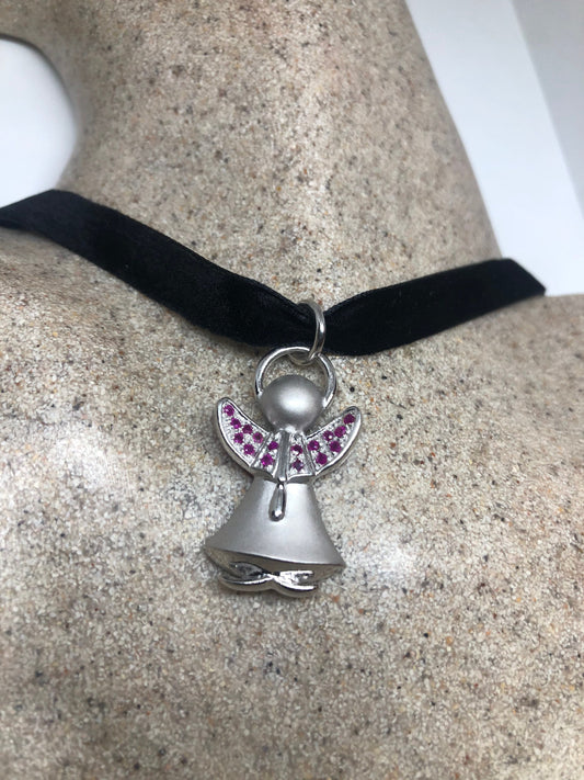 Vintage Ruby Angel Choker 925 Sterling Silver Pendant Necklace