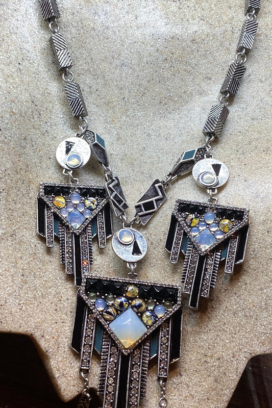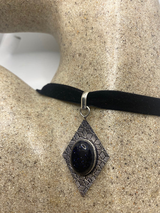 Vintage Silver Finished Genuine Facetted Antique Volcanic Glass Choker Necklace