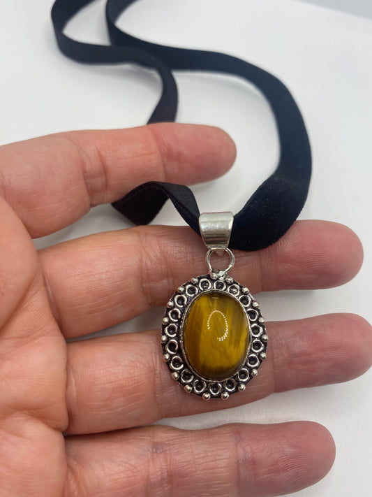Vintage Handmade Silver tigers eye Pendant Necklace