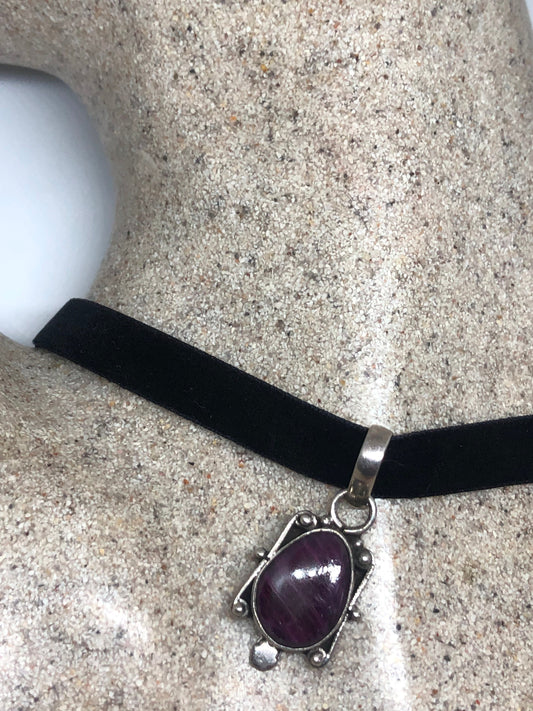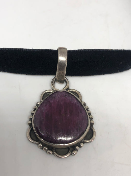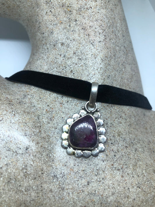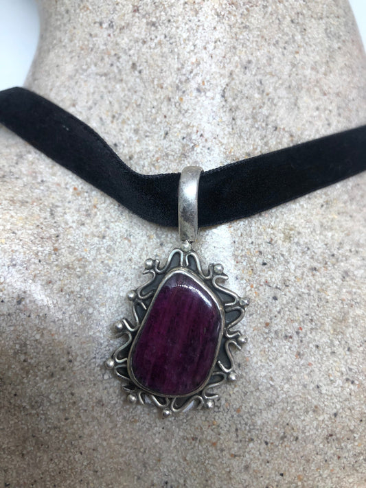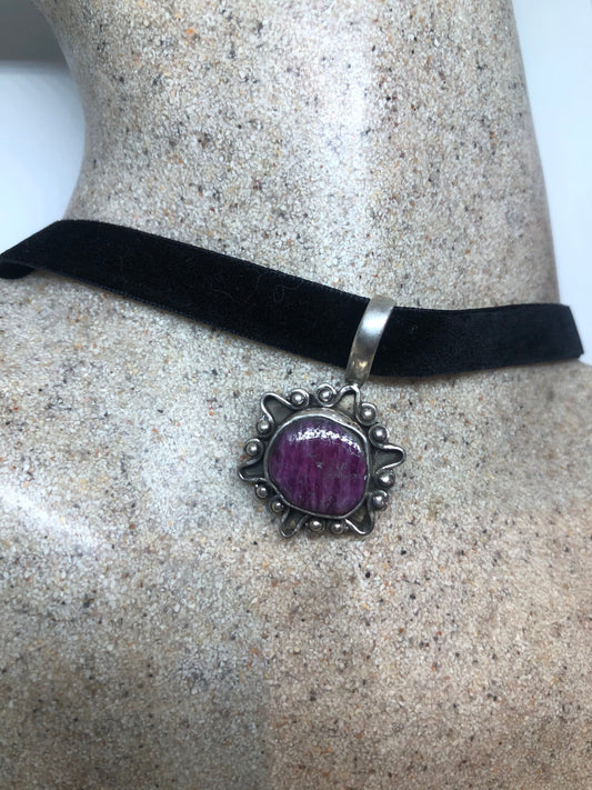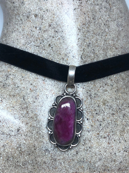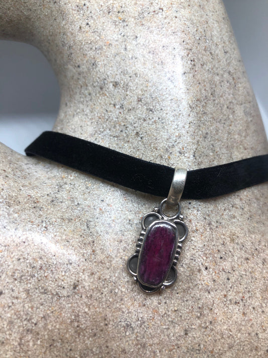 Vintage Pink Raw Ruby Choker 925 Sterling Silver Pendant Necklace