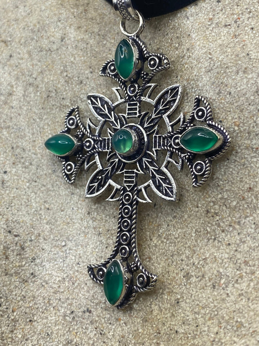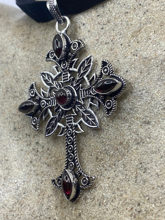 Vintage Red Garnet Cross Choker Black Velvet Necklace.