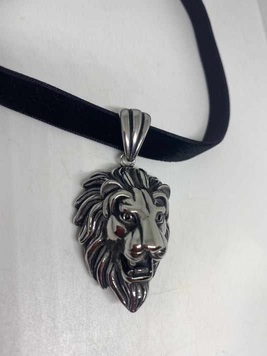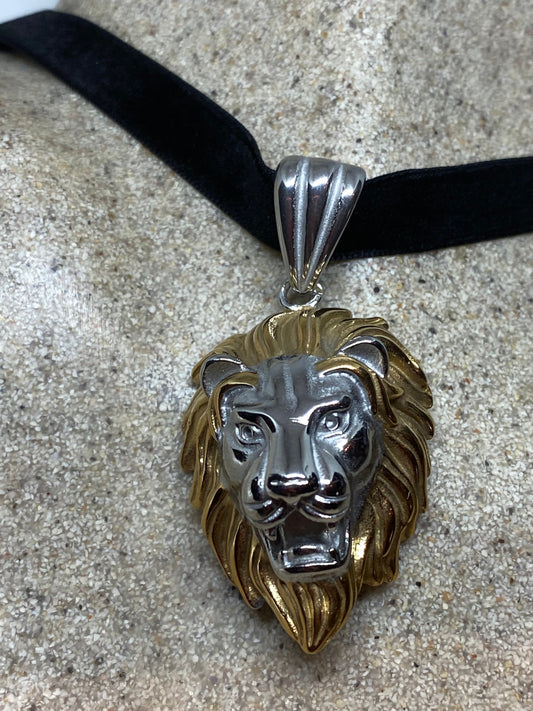 Vintage Handmade Silver Stainless Steel Gothic Lion Pendant Necklace