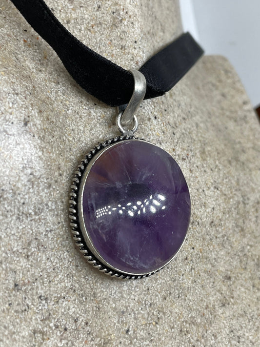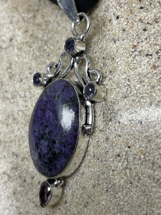 Cabochon Cut Droplet Deep Purple Genuine Amethyst soujalite Necklace
