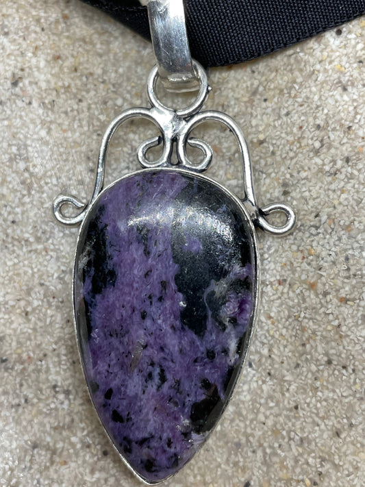 Cabochon Cut Droplet Deep Purple Genuine Soujelite Necklace