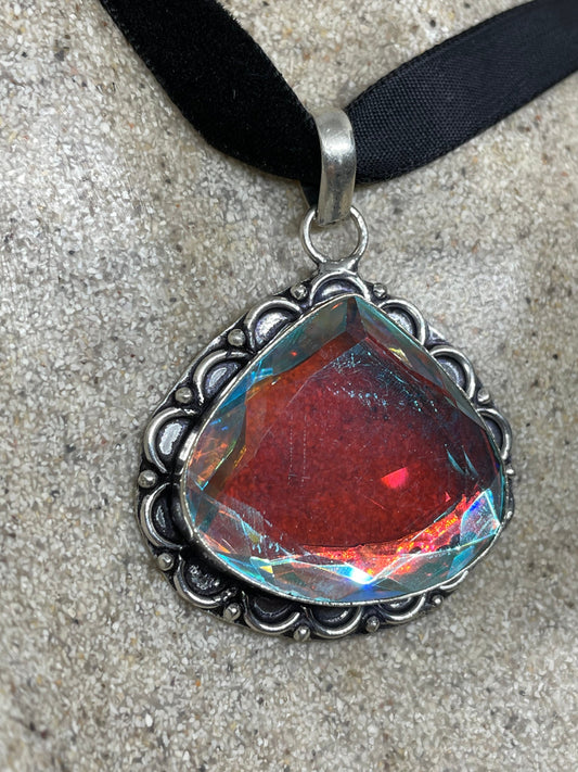 Vintage Rainbow Glass Antique Velvet Choker Necklace