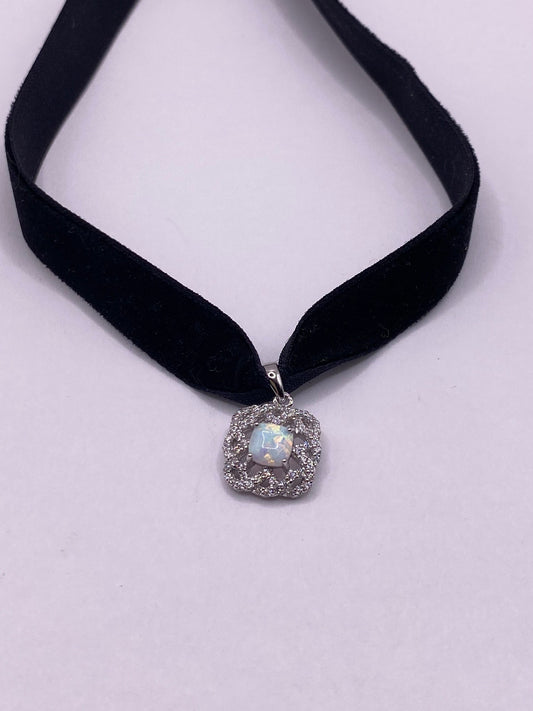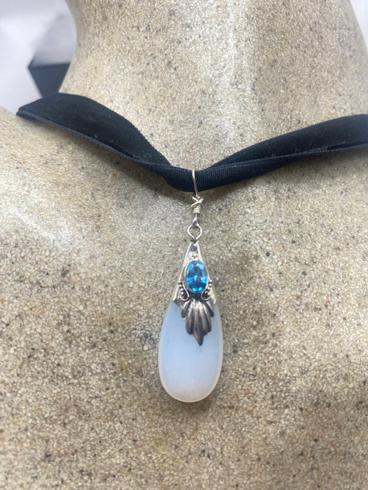 Vintage Opal milk glass 925 Sterling Silver Choker Necklace