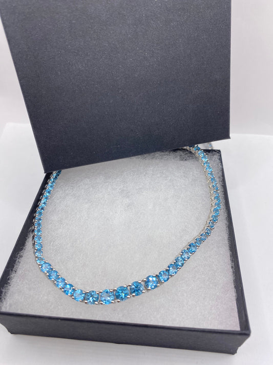 Vintage Blue Topaz Deco 925 Sterling Silver Choker Necklace Vintage