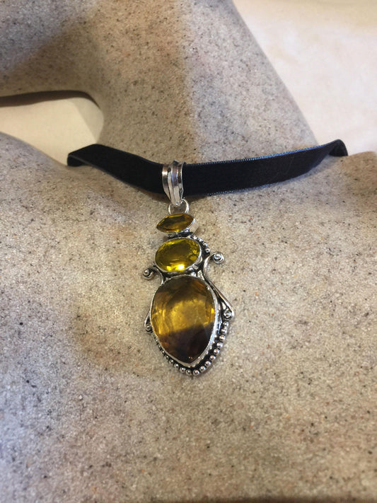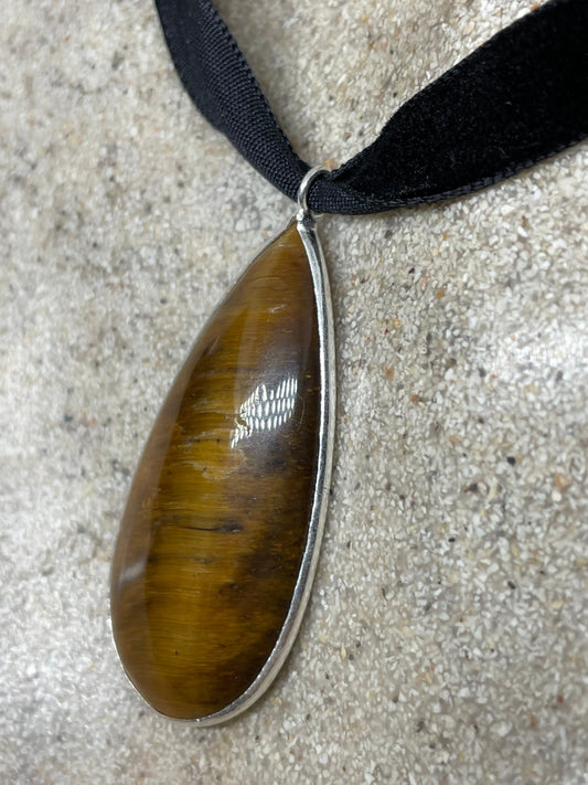 Vintage Tigers Eye Choker Silver Pendant Necklace